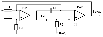 Приведем принципиальную схему фильтра, который используется в цепи обратной связи эквалайзера:
