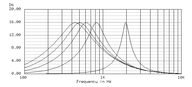 Исходя из описанных выше зависимостей можно расчитать параметры фильтров эквалайзера. Выберем десять резонансных частот фильтров графического эквалайзера, причем каждая последующая частота вдвое больше предыдущей: 30, 60, 120, 240, 480, 960, 1920, 3840, 7680 и 15360 Гц.