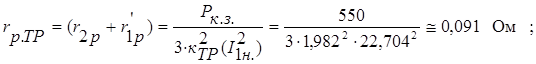 DPТР =РХХ +(SТР /SГАБ )2 *РКЗ =140+(14600/4866)2 *550=5090 Вт.