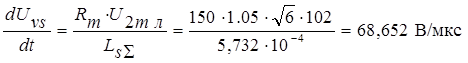 Для выбора элементов схемы выпрямителя определим мощность, которую необходимо получить на нагрузке. По условию необходимо регулировать уровнем напряжения до Uвых. max = 100 B на нагрузке с параметрами: Rн. = 1 Ом и Lн = 5 мГн. Отсюда определяем максимальную величину тока через нагрузку Id max = Ud max / Rн =100 /1= 100 А. Тогда максимальная величина мощности, отдаваемая в нагрузку равна Pmax = Ud max · Id max = 10 кВ·А.