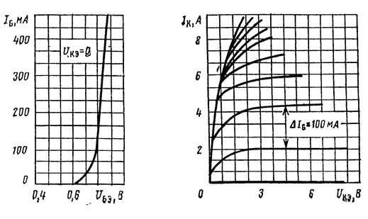 Напряжение насыщения коллектор – эмиттер при Iк = 10 А 0.5 В;