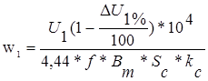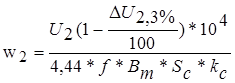 33. Для каждой вторичной обмотки, работающей на нагрузку, число витков в одном слое обмотки: