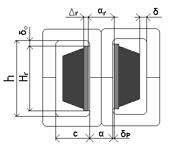 43. Ширина свободного промежутка в окне магнитопровода: зазор между наружной боковой поверхностью катушки и боковым стержнем магнитопровода: