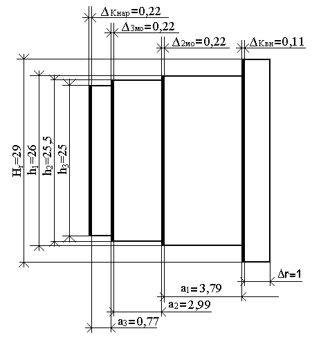 ak =∆K вн +a1 +∆2 мо +a2 +∆3 мо +a3 +∆K нар ak= 0,11+3,79+0,22+2,99+0,22+0,77+0,22=8,32 мм