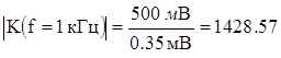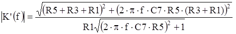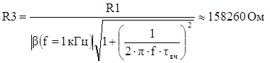 1 кГц и вышеуказанное условие R1<<R3, легко рассчитать сопротивление резистора R3 исходя из формулы для коэффициента ООС
