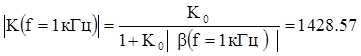 , рассчитаем необходимый коэффициент передачи цепи отрицательной обратной связи по напряжению