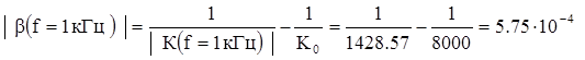 . Определим необходимый коэффициент передачи цепи отрицательной обратной связи по напряжению исходя из формулы