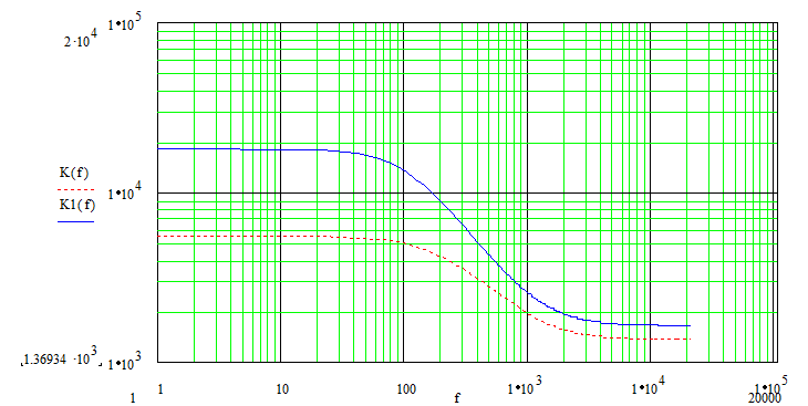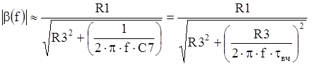 , поэтому реальная АЧХ усилителя будет рассчитываться по формуле: