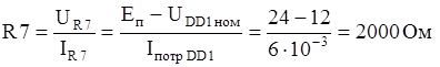 Сопротивления резистора R7 и его номинальная мощность рассчитываются исходя из выбранного значения напряжения питания микросхемы и напряжения питания, заданного в ТЗ.