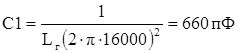 Рассчитаем ёмкость конденсатора С1, исходя из настройки контура ГВ-конденсатор С1 на частоту 16 кГц.