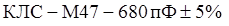 Из ряда Е24 номинальных емкостей конденсаторов выбираем номинал конденсатора С1=680 пФ и тип конденсатора
