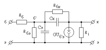 Значения элементов схемы Джиаколетто могут быть рассчитаны по паспортным данным транзистора по следующим формулам [1]: