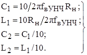 С учетом вышесказанного расчет значений элементов ЧРЦ усилителя сводится к следующему.