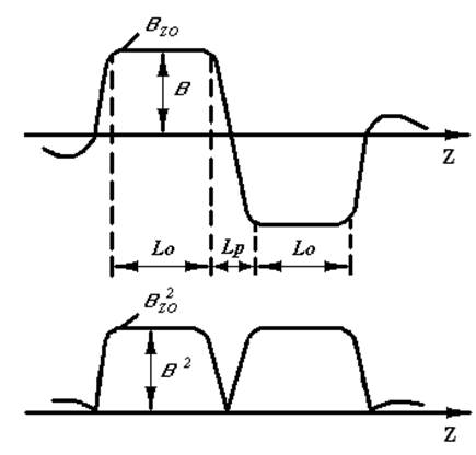 Из рисунка следует, что увеличение магнитного поля на 10 % привело к заметному уменьшения радиуса пучка в выходной части прибора (приблизительно на 30 %). В этом случае электронный поток на входе во второй реверс не расходится, а практически параллелен оси пролетного канала. Казалось бы, что если еще увеличить магнитное поле, то в выходную область прибора электронный поток будет входить сходящимся, что приведет к дальнейшему улучшению параметров пучка в этой области. Однако, как показано в дипломе, такой путь не приемлем из-за опасности возникновения насыщения перемычек между соседними пролетными каналами в полюсных наконечниках прибора изготовленных из магнитомягкого материала. Расчет показывает, что если поле в зазоре увеличить до 1200 Гс, то индукция магнитного поля в перемычках полюсных наконечников составит 16200 Гс, что близко к индукции насыщения стали 03 ВД, составляющей примерно 20000 Гс.