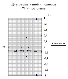3. Найти координаты нулей и полюсов нормированной передаточной функции ФНЧ прототипа.