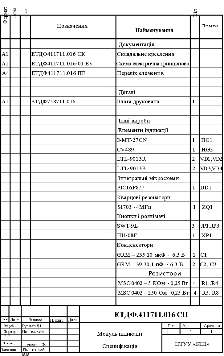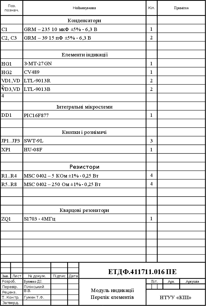 Додаток В. Модуль індикації. Перелік елементів............................................ |