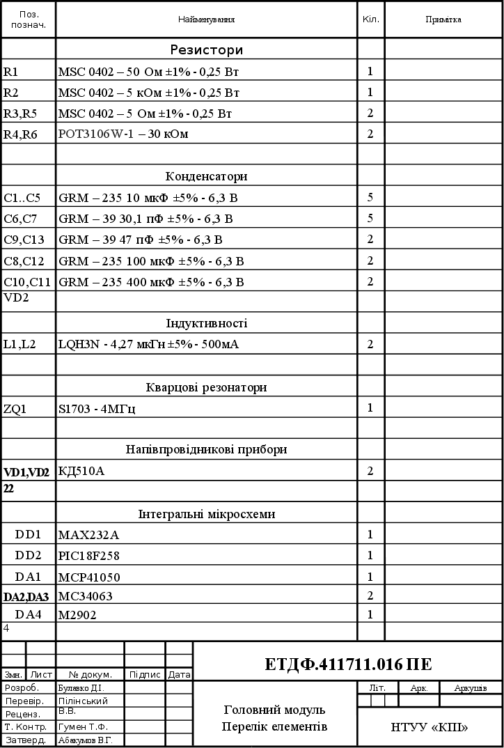 Додаток Б. Головний модуль. Перелік елементів........................................... |
