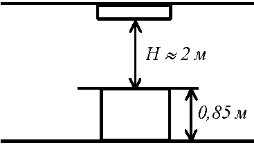 При такому значенні l можливо реалізувати тільки один ряд світильників уздовж довгої стіни.