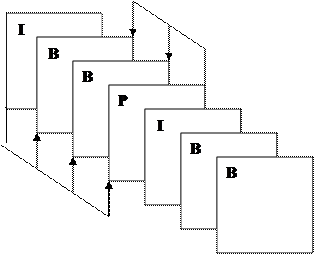 B ( Bidirctory predictive coded picture ) – изображение, при кодирование которого используется предсказание, сформированное на основе предшествующих и последующих I или P.