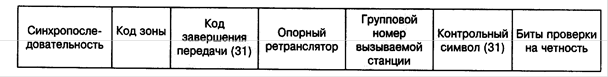 2. Код зоны. Может быть "О" или "I". Используется в многозоновых системах для предотвращения конфликтных ситуаций, когда станция, не относящаяся к данной зоне, находится в ее радиусе покрытия. Если контроллер вызываемого ретранслятора обнаружит код зоны, не совпадающий с заданным, то такая попытка соединения отвергает-