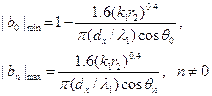 Для оценивания максимальных искажений в секторе сканирования ВЧ ФАР |q0|≤60° и при 0,05≤k1r2≤0,5, dx/l≥2 можно воспользоваться следующими экстремальными значениями амплитуд гармоник для случаев совпадающей линейной поляризации ВЧ и НЧ ФАР: