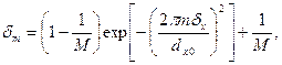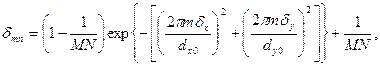 Для плоской слабо неэквидистантной ФАР с излучателями, смещенными случайным образом относительно регулярной прямоугольной сетки их расположения с шагами dx0 и dy0 по осям ОХ и ОY, уровень подавления mn-го дополнительного бокового лепестка