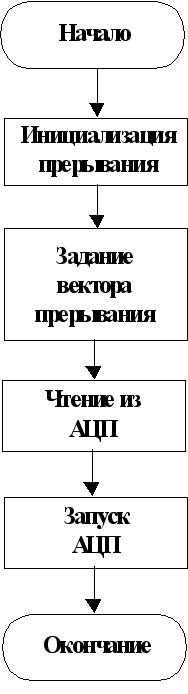 Взаимодействие стробоскопического преобразователя с ЭВМ осуществляется с помощью блока управления, обеспечивающего формирование сигналов для организации программного обмена и прерывания программы. При построении блока управления использованы стандартные для магистрали МПИ структуры логических узлов. Логическое устройство обеспечивает дешифрацию адресов регистров: запуска, чтения, записи и маскирования прерывания. В качестве сигнала запроса на прерывание ГОТОВО, поступающего на логическое устройство организации режима прерывания из преобразователя, используется сигнал запуска АЦП. Этот же сигнал устанавливает в состояние готовности седьмой разряд регистра состояния.