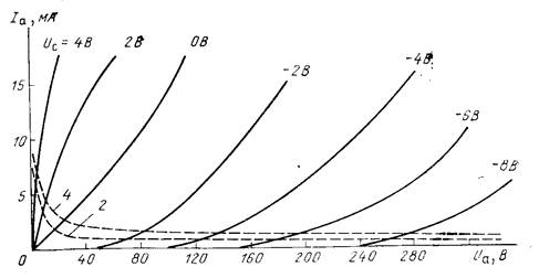 Характеристики сеточного тока. Как уже отмечалось, при положит ель ном напряжении на сетке появляется сеточный ток I c.