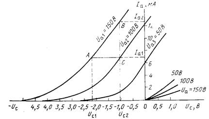Характеристики сеточного тока lc =f(Ua) при U c=const даны на рис.4 штриховыми линиями.