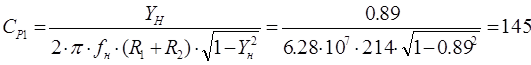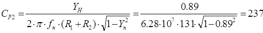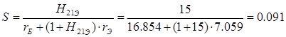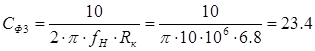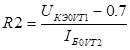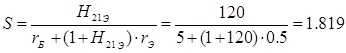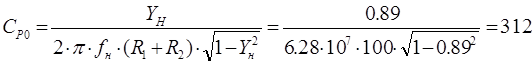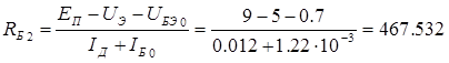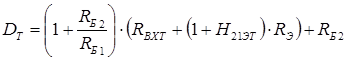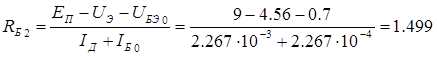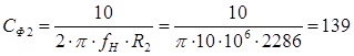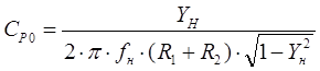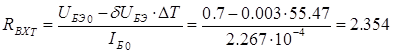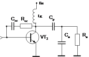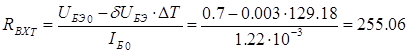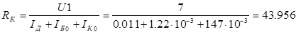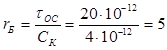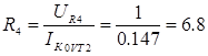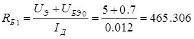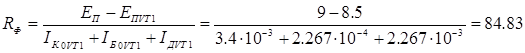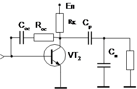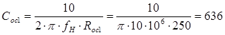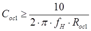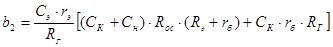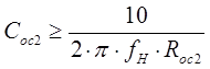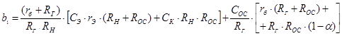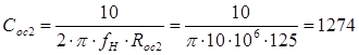 Сопротивление обратной связи Rос находим исходя из заплонированного на выходной каскад коэффициента усиления, в разах, сопротивления генератора или другими словами выходного сопротивления предыдущего каскада и рассчитываем по следующей формуле [2]: