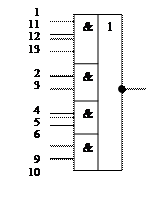 Питание подается на 14-ый вывод (14-ю ножку), а земля или логический ноль – на 7-ой вывод (ножку). Соединяем все незадействованные входы задействованных элементов параллельно с одним из задействованным входом, а все незадействованные входы незадействованных элементов – с землей (логическим нулём).