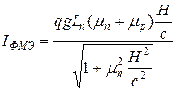 ) ток ФМЭ увеличивается пропорционально напряженности магнитного поля. Это объясняется тем, что при воздействии сильного магнитного поля траектории носителей между столкновениями сильно искривлены и скорость диффузии меньше, чем при отсутствии магнитного поля. Это явление отражено в формуле, определяющей зависимость эффективных значений диффузионной длины и коэффициента диффузии от магнитного поля: