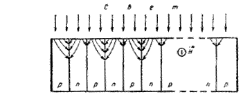 Таком магнитометр может быть сконструирован в виде полупроводниковой пластинки с большим числом последовательно расположенных p-n переходов (рис. 5).