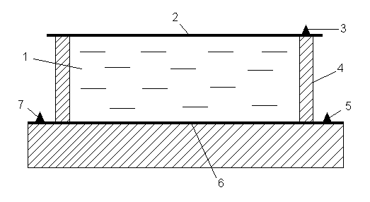 Принцип работы электрохимического управляемого сопротивления (этот прибор иногда называют мимистором, рис. 1) основан на изменении сопротивления проводника в результате катодного осаждения на него металла или анодного растворения. Мимистор, работающий с использованием медного электролита, состоит из стеклянного корпуса 4, заполненного электролитом 1 (обычно CuSO4 + H2 SO4 + этанол). На одной из стенок герметично закрытой ванны нанесена электропроводящая подложка 6, имеющая выводы 7 и 5, расположенные вне гальванической ванны. Электролит омывает электрод 2 с выводом 3. Входные сигналы подаются на электропроводящую подложку 6 и электрод 2. В зависимости от полярности входных сигналов на подложке 6 медь будет или гальванически осаждаться, или анодно растворяться. Тем самым будет изменяться электрическое сопротивление медной пленки, находящейся на подложке 6. Воспроизведение величины изменяющегося сопротивления обычно производят с помощью мостовых измерительных схем. Приборы подобного типа имеют диапазон изменения сопротивления 0...1000 Ом, диапазон токов управления 0,05...1 мА, потребляемую мощность управления 10-3 ...10-6 Вт, объем 0,2...0,4 см3 , массу - несколько граммов. Они могут работать при температурах - 15...+ 100 °С, устойчивы к ударным нагрузкам и вибрации. Все эти качества мимисторов делают их весьма перспективными приборами для использования в автоматике, вычислительной и измерительной технике. Они находят применение для создания реле времени, счетчиков импульсов, интегрирующих устройств, самонастраивающихся систем автоматики и т. п.