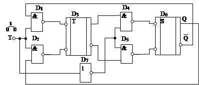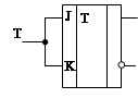 Несинхронный Т – триггер имеет один вход Т, основной и инверсный выходы. Входной импульс переключает триггер в противоположное состояние. Структурная формула, описывающая работу Т- триггера имеет следующий вид: