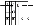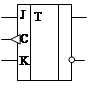Несинхронный JK – триггер имеет два входа J и K, основной и инверсные входы. Вход J аналогичен входу S RS – триггера. По этому входу триггер устанавливается в состояние «1». По входу K триггер сбрасывается в «0», как и RS – триггер по входу R. Отличие от RS – триггера состоит в том, что этот триггер не имеет запрещенных комбинаций сигналов на входах, а при подаче управляющих сигналов одновременно на оба входа триггер переключается в противоположное состояние. Синхронный JK – триггер имеет еще один вход С – вход синхронизации и переключается только при подаче импульса на этот вход.