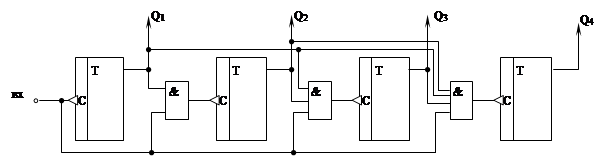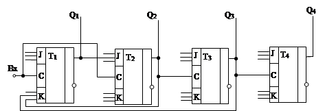 Счетчики строятся на Т – триггерах или на универсальных JK – триггерах.