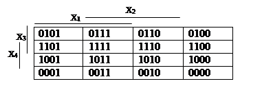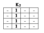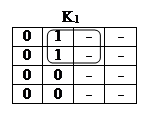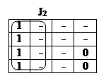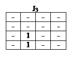 В клетках, в которых функция не определена или её значение не играет роли (т.е. ставится прочерк), можно помещать любые значения переменных, чтобы объединить контуром наибольшее количество клеток. Так, в табл. 4 для J1
