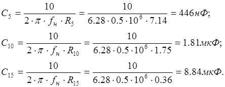 7 Расчет разделительных и блокировочных конденсаторов……………….……35