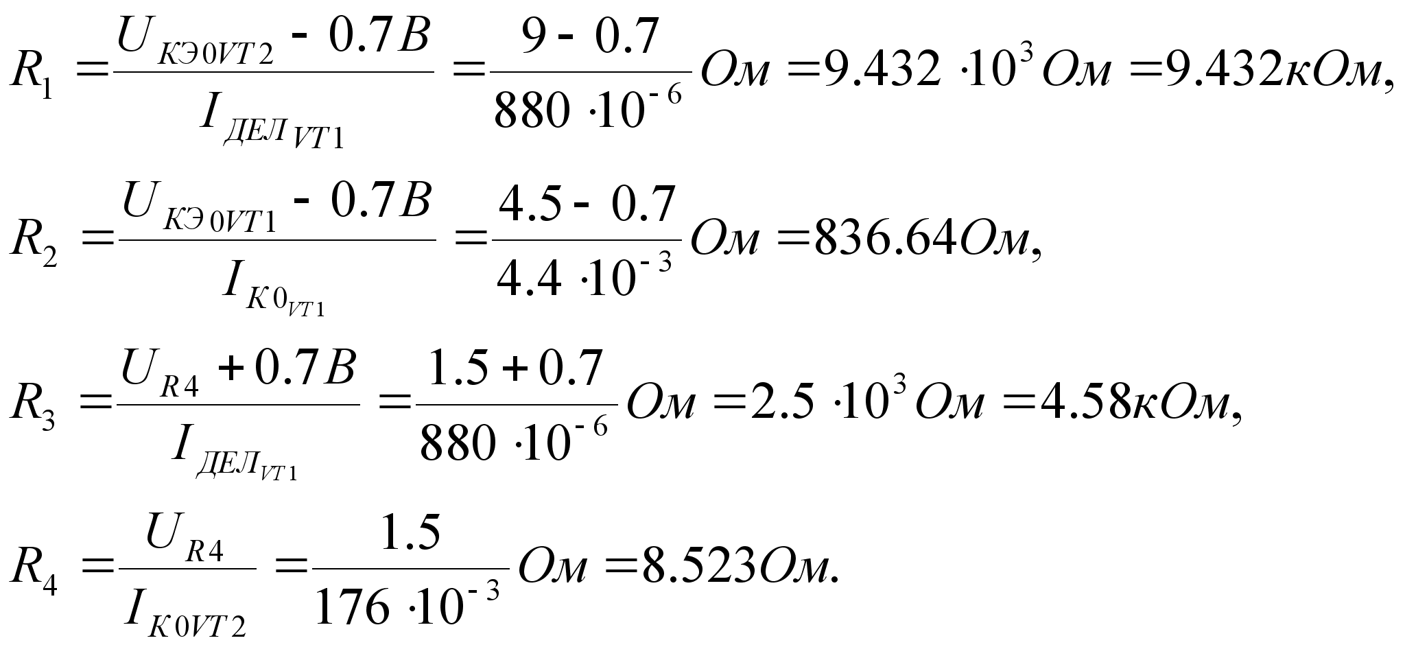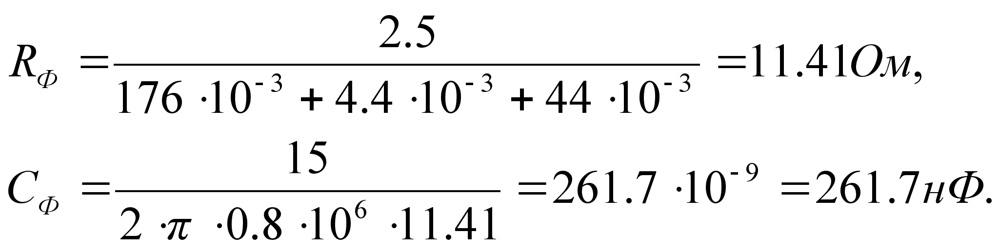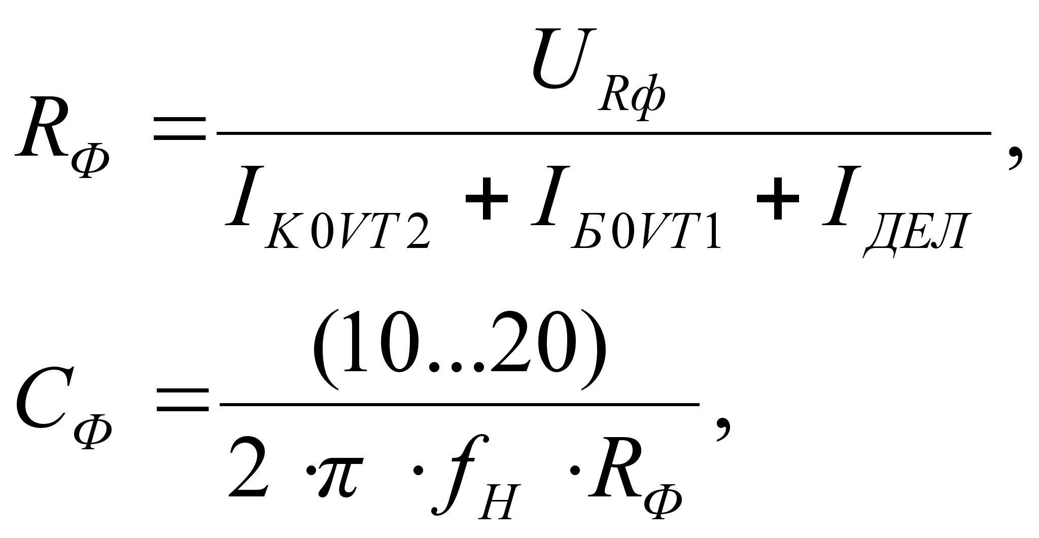 Рассчитаем элементы RC-фильтра, служащего для устранения паразитной обратной связи через источник питания (пункт 6.1) по формулам