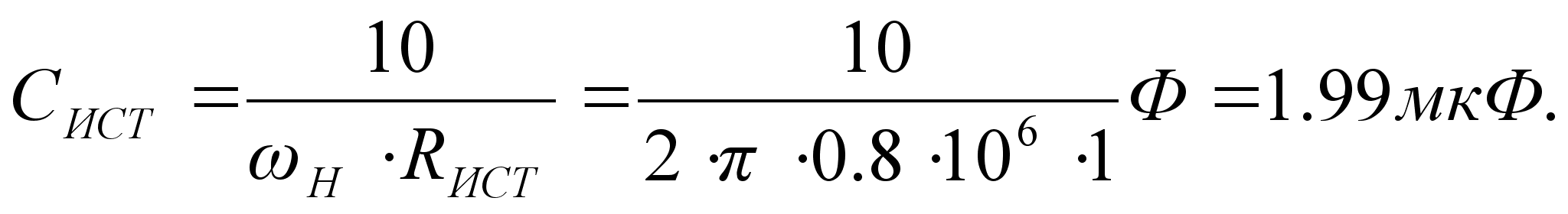 Полагая сопротивление источника RИСТ = 1Ом, по формуле (6.5) рассчитываем: