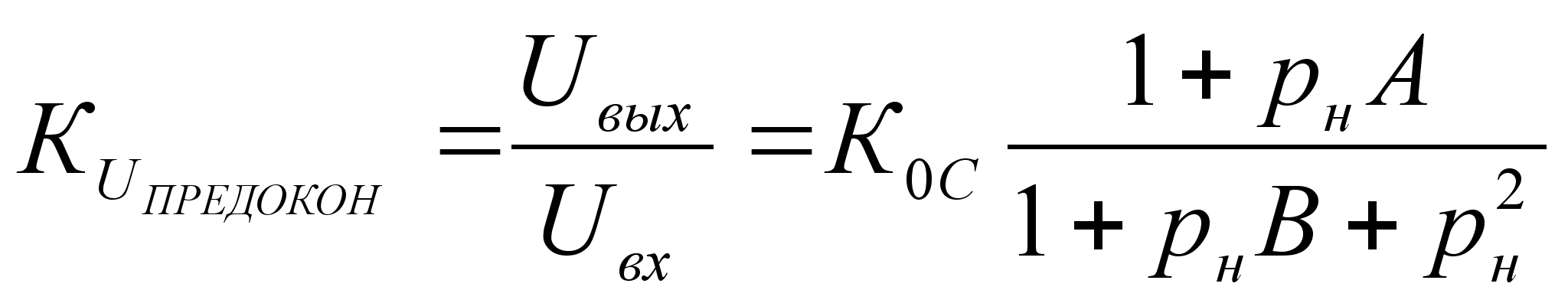 Коэффициент передачи предоконечного каскада в области верхних частот описывается выражением: