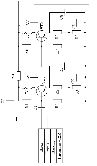 В процессе работы производился анализ различных схем реализации усилительного устройства, расчет его параметров и элементов. В результате была разработана схема усилителя, отвечающая требованиям технического задания.