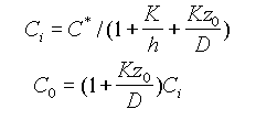 где Ci - концентрация окислителя в молекулах на кубический сантиметр при z = z0,