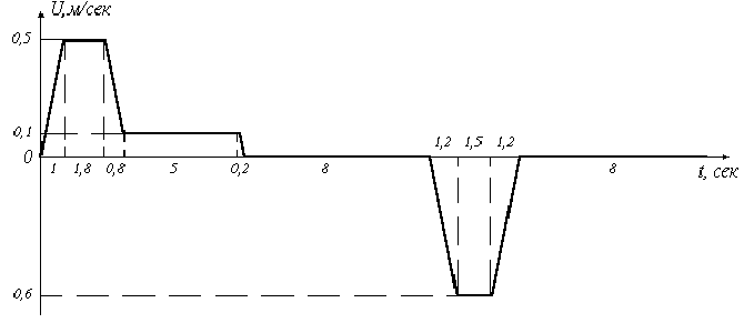 В соответствии с заданной тахограммой выделяем 3 скорости: максимальную (0,6 м/с), среднюю (0,5 м/с) и минимальную (0,1 м/с).