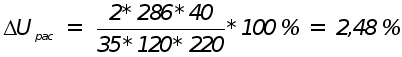 Проверяем выбранные кабели на падение напряжения на выбранном участке. Uдоп = 5 % , l = 40 м.