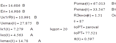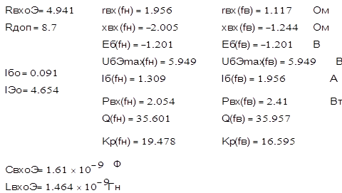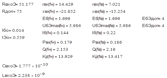Выходными результатами будут являться данные расчета входной(базовой) цепи: