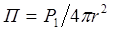 Обозначая через Р1 излучаемую источником мощность, определим плотность потока энергии (вектор Пойнтинга) на расстоянии rот источника радио волн (рис.1), основываясь на том, что излучаемая энергия равномерно распределяется по поверхности сферы радиуса r. Выражая мощность излучателя в Вт, а линейные размеры - в м , получим для численного значения вектора Пойнтинга выражение