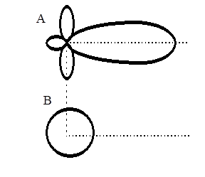 Предложим, что рядом расположены направленная А и изотропная В антенны. На рис. 2 схематически диаграммы направленности обеих антенн. Изотропная антенна, как и следовало ожидать, обладает круговой диаграммой направленности