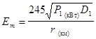 Единицы измерения величин, входящих в формулы (1.5) - (1.7), не очень удобны для практического применения, так как напряженность поля выражена в В/м , а расстояние - в м . Выражая мощность в кВт, расстояние - в км , а напряженность поля - в мВ/м , получаем